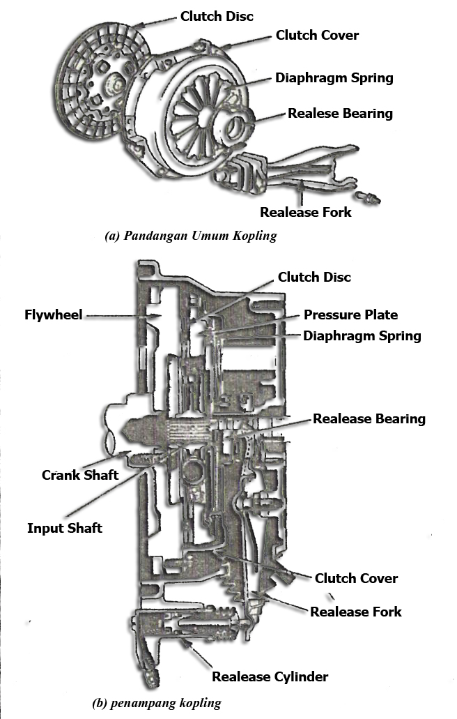 17/11/2020 · penggunaan jenis komponen kopling mobil cover clutch ini bisa ditemukan pada kendaraan besar seperti bus dan truck. Bagian lainya mirip pada kopling pada umumnya ada pressure plat dan kampas kopling. Kopling diafragma kopling ini dikenal dengan nama kopling diafragma, sebab clutch cover atau rumah koplingnya menggunakan pegas diafragma. Dalam jenis kopling fluida tidak ada hubungan mekanis antara driving dan driven. Dimana, bagian ini terpasang pada roda penerus atau fly wheel dengan cara di batu.